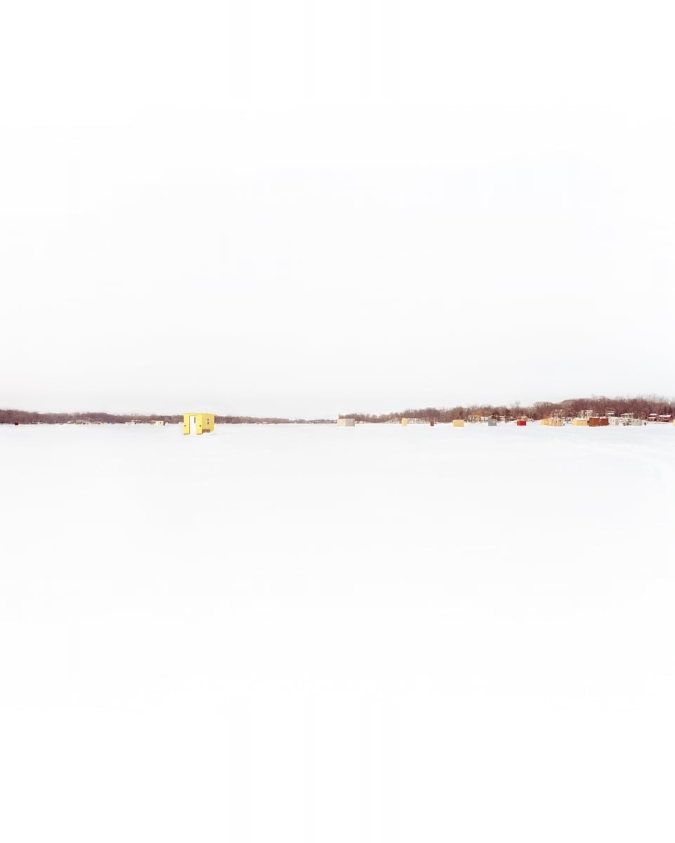 Voor de Icehouses serie fotografeerde ze de seizoenshuisjes van ijsvissers op de bevroren meren in Minnesota. Ze werd aangetrokken door het feit dat die huisjes jaarlijks in een wisselende samenstelling worden opgebouwd. Opie koos voor een standpunt waarbij de huisjes als een kleurrijk lint aan de horizon staan. Zo delen ze de witte, meditatieve ruimte in tweeën tot een bijna abstract beeld.