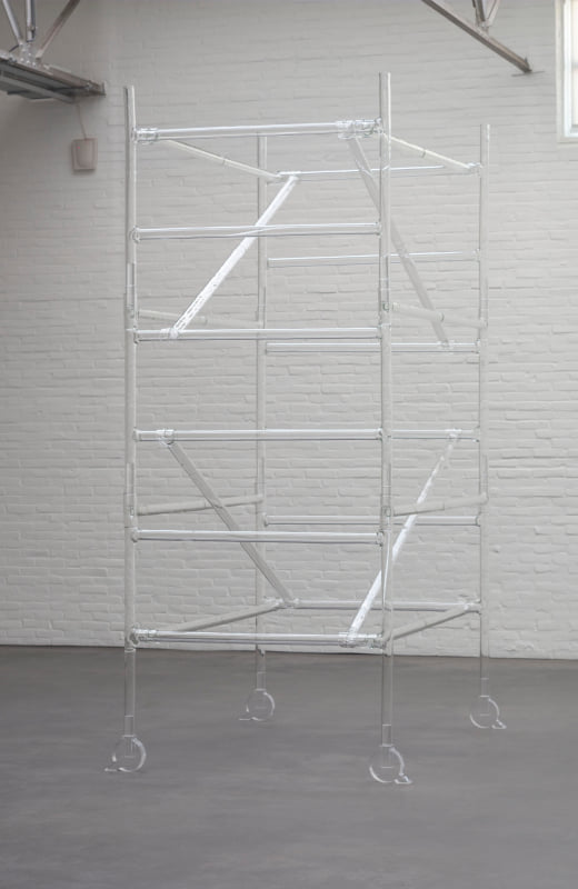 Uit Work 1 spreekt de ranke maar onbedoeld esthetische vorm van deze stellage, die maximale stevigheid koppelt aan maximale tijdelijkheid. Door glas te gebruiken voor iets dat is bedoeld om steun te bieden, toont Banner de inherente breekbaarheid van het medium waarmee ze werkt. Zo maakt ze een constructie die speelt met tegenstellingen, die aanwezig is maar afwezigheid suggereert, die is gemaakt van een hard materiaal maar toch doorzichtig is.