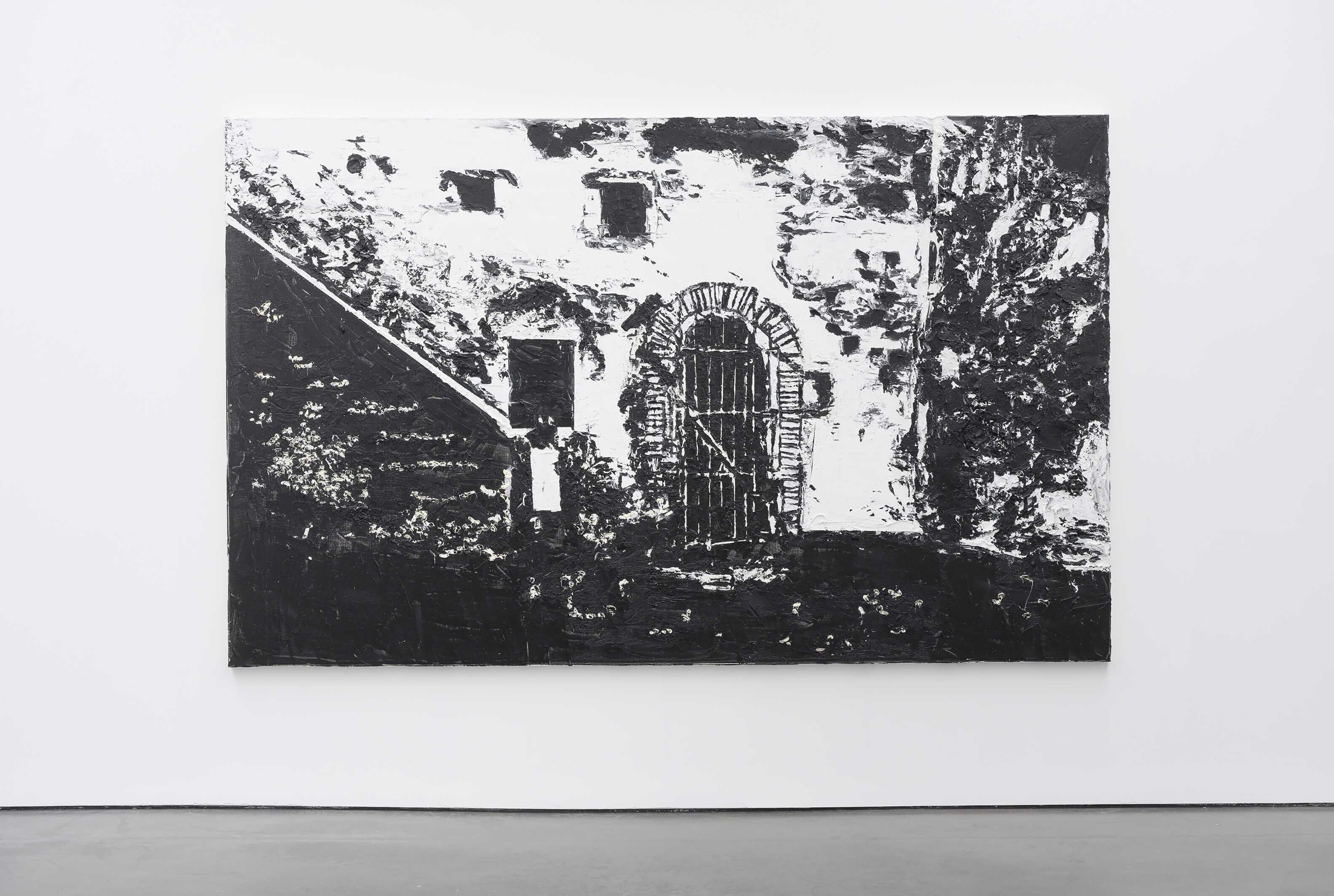 Broeks beelden van plekken aan de Atlantische Oceaan, waar veel tot-slaaf-gemaakten werkten of gevangen werden gehouden alvorens te worden verscheept, brengt hij in beeld als locaties van het kwaad – net zoals Armando ooit de omgeving rondom Kamp Amersfoort neerzette als ‘schuldig landschap’. Locaties als een plaats delict, een plek onder de zon die het onrecht zag gebeuren maar niet ingreep. Vrouwenkerker is zo’n plek: een getraliede poort in een verweerde muur. Het doek is groot, de verf dik en zwaar, alsof de muur er letterlijk uit is opgetrokken, en – niet onbelangrijk – het hele doek is zwartwit, als symbool van de kloof tussen twee bevolkingsgroepen. Wie heeft die kerkers gebouwd? Wie heeft dit systeem bedacht en in stand gehouden? Het zijn vragen waar je oog in oog met dit werk niet aan ontkomt.