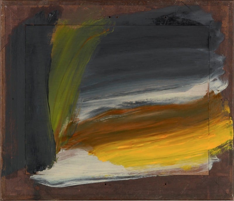 Hodgkin was een weergaloos colorist. Zijn schilderijen doen in eerste instantie abstract aan, maar zelf hij omschreef hij ze als voorstellingen van emotionele situaties. Direct herkenbare motieven zijn er amper. Zijn schilderijen noemde hij de ‘equivalenten van herinneringen’; vertalingen in kleur en vorm van ervaringen die niet noodzakelijkerwijs visueel van aard zijn. Hoe spontaan de werken er ook uitzien, in werkelijkheid zijn ze, laag over laag, bevochten tijdens een langdurig ontstaansproces. In de titels refereert Hodgkin aan de aard van de herinneringen die aan de schilderijen ten grondslag liggen. In zijn laatste jaren waren dit vaak fenomenen en sensaties in de natuur: de tintelende frisheid van een regenbui in de lente, de beweeglijkheid van een blaadje of, zoals in Yellow Sky, de zwaarte van een dreigende wolkenlucht.