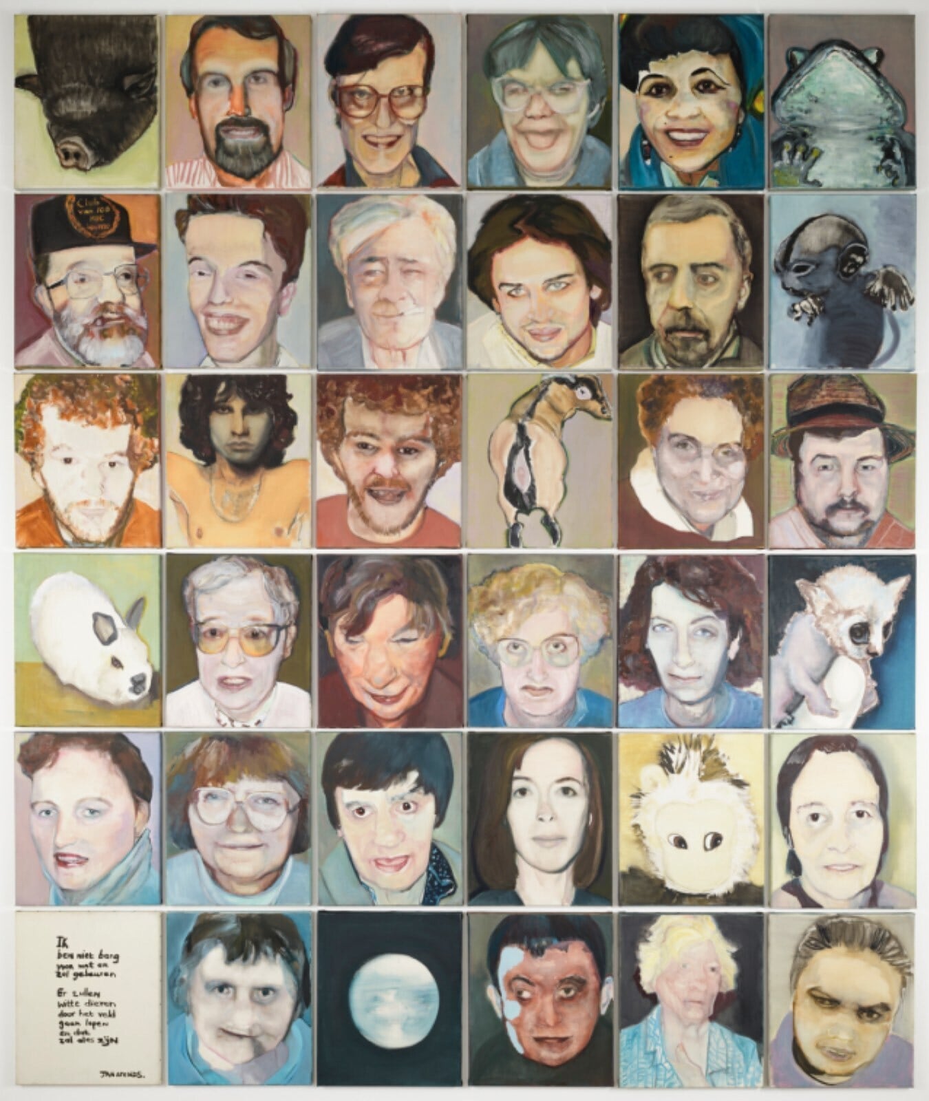 Dumas maakte het in opdracht van de kunstcommissie van 't Hooghuys in Etten-Leur. Het werk bestaat uit 36 kleine schilderijen van 60 x 50 cm die in zes rijen van zes boven elkaar hangen. De reeks bevat 26 portretten van mannen en vrouwen, cliënten en medewerkers van de instelling voor geestelijke gezondheidszorg, plus een afbeelding van rockster Jim Morrison van The Doors met ontbloot bovenlijf. Ze worden afgewisseld met een paar huisdieren, knuffels, de maan en een gedicht van Jan Arends.