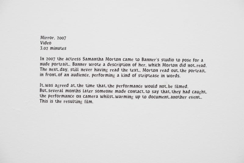 De vroege werken van Fiona Banner hebben de vorm van 'wordscapes' (woordlandschappen) of 'still films' (verstilde films), waarin ze in haar eigen woorden gedetailleerde beschrijvingen geeft van speelfilms als Point Break (1991) en The Desert (1994). Deze werken zien eruit als grote blokken tekst met vaak dezelfde vorm en omvang als een bioscoopscherm. Haar iconische publicatie The Nam is een enorm boek van 1000 pagina’s met beschrijvingen van het verhaal van zes volledige Vietnamfilms.