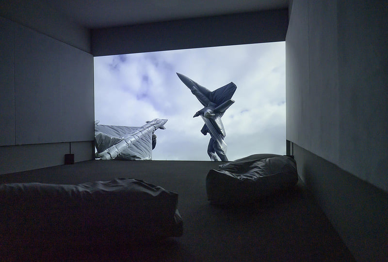 - High definition digitale film, monitor, stalen schildersezel ontworpen door de kunstenaar