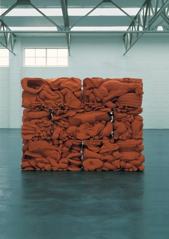 Zonder titel (r.k. 015) uit 1992 ziet eruit als een decoratieve muur en bestaat uit vijf grote en twee kleinere elementen van helderrode klei. De bouwblokken zijn echter merkwaardig van samenstelling: herkenbaar zijn voorwerpen uit de huiselijke omgeving, zoals televisietoestellen, toetsenborden, stofzuigers en kitscherige keramische beelden van dieren – die allemaal danig vervormd zijn. Het geheel oogt enigszins als een afvalberg, chaotisch en keurig tegelijk, alsof het hele boeltje van ons dagelijks leven in gelid is gebracht.