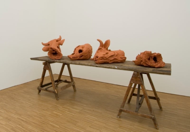 Zonder titel (vier dierschedels op tafel)