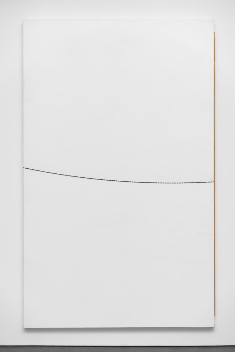 - acrylverf, marmerpoeder op linnen, ketting