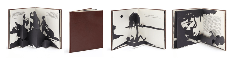 - laser gesneden papier, pop-up boek, gebonden in bruin leer
