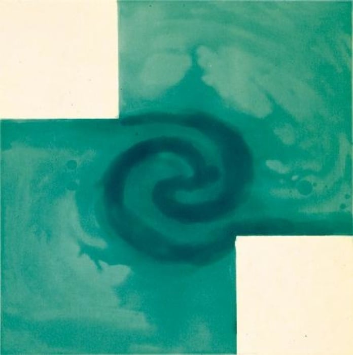 De overzichtelijke indeling en de krachtig geschilderde vlakken maken Laurens uit 1986 tot een heel direct schilderij. Twee grijze lijnen verdelen dit werk in vier gelijke delen, maar van een statisch effect is geen sprake. Het resultaat is eerder filmisch, alsof binnen de identieke segmenten het rode en gele vlak niet helemaal ‘in beeld’ zijn. De kleurvlakken lijken bovendien op drift: door hun positie ten opzichte van het grijze raster ontstaat een gevoel van verticale beweging.