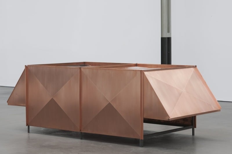 In zijn essay in de catalogus analyseert Dominic van den Boogerd het werk van Rita McBride in de traditie van de beeldhouwkunst en met name in de verhouding tot de Minimal Art uit de jaren zestig en zeventig. De Minimal Art kenmerkt zich door de herhaling van geometrische vormen en volumes en door het ontbreken van een persoonlijk handschrift in de materiaalbewerking of fabricage van het beeld. In schaal en maatvoering manifesteert de Minimal Art zich altijd in een directe relatie tot de omringende ruimte. Tegelijk functioneert de museale context als wezenlijk onderdeel en in zekere zin zelfs als legitimering voor de platen, balken, kubussen en overige materiële verschijningen van de Minimal Art. Het zijn deze aspecten waar Rita McBride in haar werk op reflecteert. Haar beelden ogen dikwijls als abstracte geometrische vormen, maar bij nadere beschouwing blijken de vormen vaak ontleend aan architectuur of aan industriële produkten. McBride problematiseert deze visuele verwantschap door haar beelden in materiaal, maat of titel een onverwachte meerduidigheid te geven. Zo zijn de tribunes van de Arena eigenlijk te groot en te hoog voor de ruimte waarin ze staan opgesteld. Hierdoor krijgt het beeld een vervreemdende functionaliteit. Van den Boogerd schrijft: “…Arena (vestigt) de aandacht op hetgeen zich in, achter, buiten of rond de tentoonstelling afspeelt.