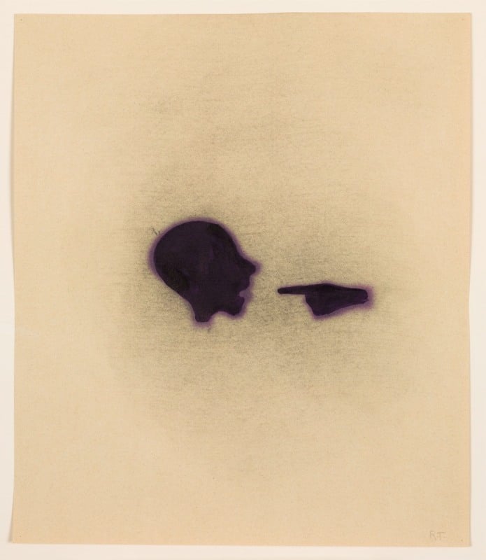 Niet alleen in de sculpturen ook in zijn tekeningen wist Therrien het alledaagse een bijzondere magie te geven en ook hier speelt schaal een belangrijke rol. Therrien richtte zich in zijn werken op papier, waarin hij een veelheid aan materialen en technieken toepaste, echter juist op het kleine. Hoe nietig de motieven soms ook zijn, ze beheersen het vlak. De motieven lijken afkomstig uit de wereld van de strip en zijn teruggebracht tot hun meest kernachtige vorm. Net als bij de sculpturen, behoren de duiveltjes, een babykopje, een hoofdje met een wijzende hand, een galg, strik of rookwolkjes in de tekeningen tot het collectieve geheugen. De sfeer is speels en licht, met een vleugje humor en nostalgie en soms een wat dreigender ondertoon.
