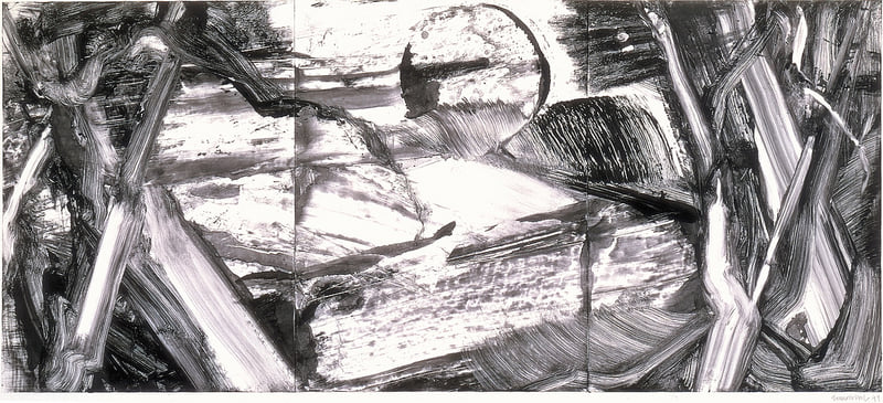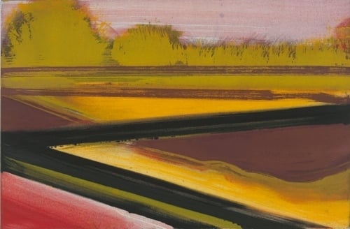 Zonder titel (1996) toont een weidse ruimte met een zigzaggende asfaltweg en een rij boompjes aan de horizon. De construerende contouren en overzichtelijke vlakverdelingen, kenmerkend voor Zandvliets grotere schilderijen, hebben plaatsgemaakt voor een losse, schetsmatige opzet. De zeventiende-eeuwse rivierlandschappen van Jan van Goyen komen in de herinnering, en Mondriaans doekjes van het Gein bij avond, geschilderd tussen 1904 en 1908. Maar bovenal oogt het schilderijtje uitgesproken synthetisch. Het realisme van Van Goyen en het symbolisme van de jonge Mondriaan zijn Zandvliet vreemd. Hij schildert zijn landschap in magentaroze, felrood, diepzwart, geel – onnatuurlijke, gloeiende kleuren die doen denken aan kleurnegatieven. Zoals onze waarneming gekleurd is door onafzienbare hoeveelheden film- en televisiebeelden, zo is ook ons beeld van het landschap beïnvloed door fotografische representatie.